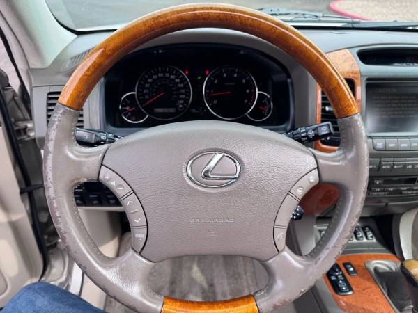 Telescoping Wheel, 4WD, Traction Control, Air Conditioning, AM/FM Stereo, Alloy Wheels, Running Boards, Leather, Roof Rack, Stability Control, Dual Air Bags, Cassette, Dual Power Seats, Mark Levinson Sound, V8, 4.7 Liter, Hill Descent Control, Navigation System, Power Windows, Power Door Locks, Side Air Bags, Hill Ascent Control, Backup Camera, CD/MP3 (Multi Disc), Moon Roof, Third Row Seat, ABS (4-Wheel), Automatic, 5-Spd w/Overdrive, Cruise Control, Power Steering, Bluetooth Wireless SUV SUV 8 4 4WD V8, 4.7 Liter Gold Gasoline Beige Automatic, 5-Spd w/Overdrive