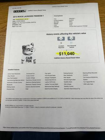 2012 Buick Lacrosse Premium 4Door Sedan 3.6 Liter V6 Automatic with Only 59xxx Miles Light Beige Exterior with Beige Leather Interior Has Power Windows and Locks, Cruise, Tilt Steering, Automatic Climate Control, Heated Side Mirrors, Power Seats, Electronic Braking and Traction Control, Remote Engine Start, Parking Sensors, Bluetooth, Satellite Radio, USB Audio Input, Alloy Wheels. Drives Smooth with No Issues! Regularly Maintained. Clean Inside and Out! Clean Title.