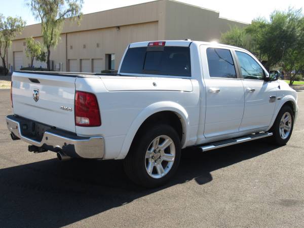 2012 Dodge Ram 1500 Laramie Longhorn Crew Cab 4WD 5.7L V8!!!! In Excellent Condition Well maintained Mechanically Drives Like New Come Test Drive It You Won't Be Disappointed Alot Of Service Records The Whole Top End Has Been Done We Have Receipts. White Exterior With Brown Leather Interior With Lots Of Options Ice Cold A/C, 4x4, ABS, Navigation, Power Windows, Power Locks, Power Steering, Cruise Control, Tilt Wheel, AM/FM Radio, Parking Sensors, Backup Camera, Running Boards, Tow Package, Tinted Windows, Sliding Rear Window, Power Mirrors, Cooled And Heated Seats, Bedliner and much More!!!