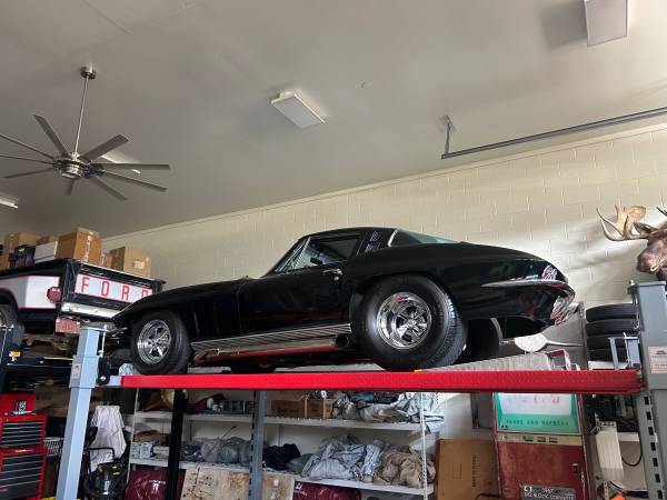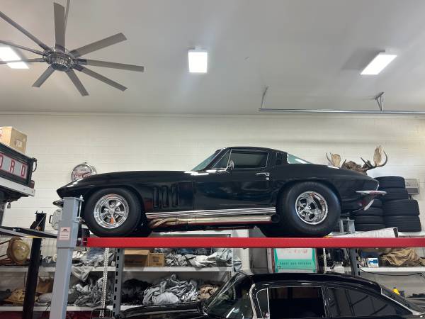 1965 CORVETTE COUPE PRO STREET FULL ROLL CAGE PROFESSIONALLY TUBED VERTICAL COMP SHIFTER SIDE PIPES 355 SBC TRANS SUPER T-10 4 SPEED AND SCATTER SHEILD REAR SUSPENSION 4 LINK WITH COIL OVERS DANA 60-2 4:10 GEARS READY TO RESTO-MOD OR RESTORE SHE NEEDS MAKE OVER TO MAKE SHOW CAR CAN DRIVE ON STREET AS IS PROJECT 46000 OBO