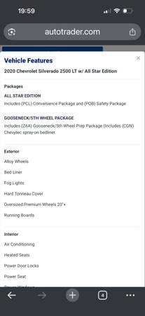 2020 Chevrolet Silverado 2500 HD Crew Cab LT Pickup. This powerful truck has a 6.6L V8 Turbo Diesel with a 10-speed Allison AT transmission and 4WD. With 99,966 miles, it's in good condition and ready for its next adventure.