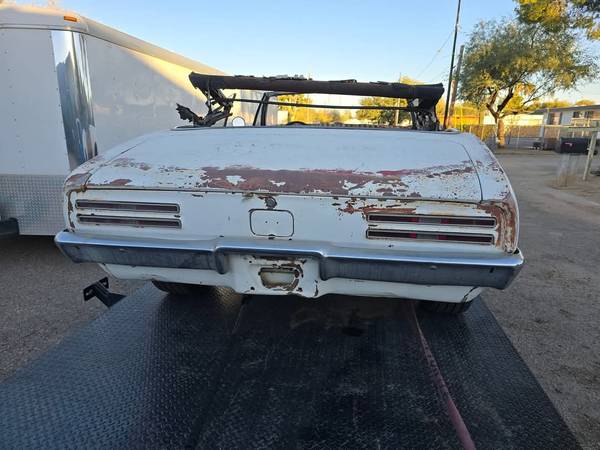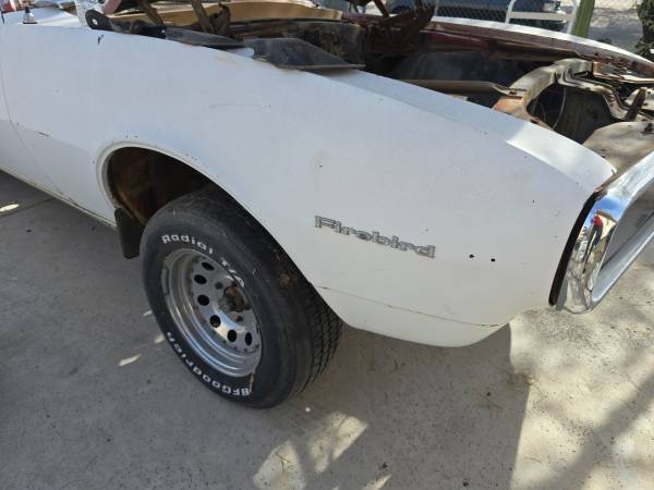 I have a very good builder.Sixty seven, firebird convertible, very little rust.Great floor pans great trunk.Ninety five percent there. Front end is just lightly bolted on.So I could take pictures of areas, people were asking about. Come check it out if you're interested. I don't want to send a 1000 pictures.