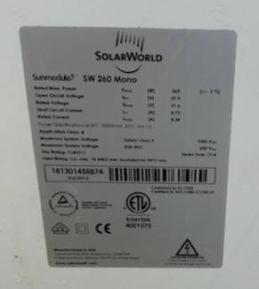 Selling SolarWorld solar panels. 260W. Very nice condition.