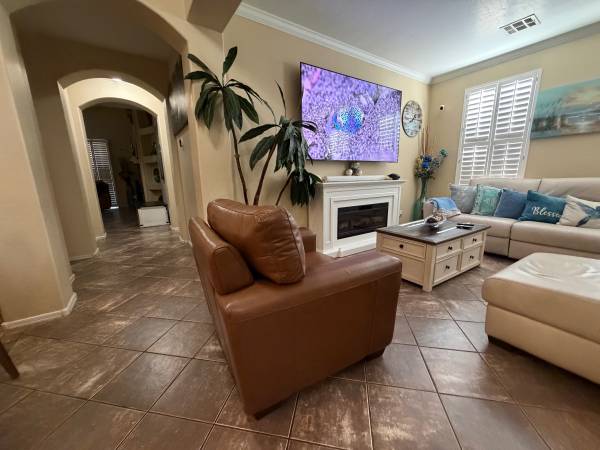 Hi , i'm selling a beautiful top grain leather arm chair is extremely comfortable , the dimensions are 41" inch wide x 39" inch depth and 33" inch height , send me a message if you interested thank...