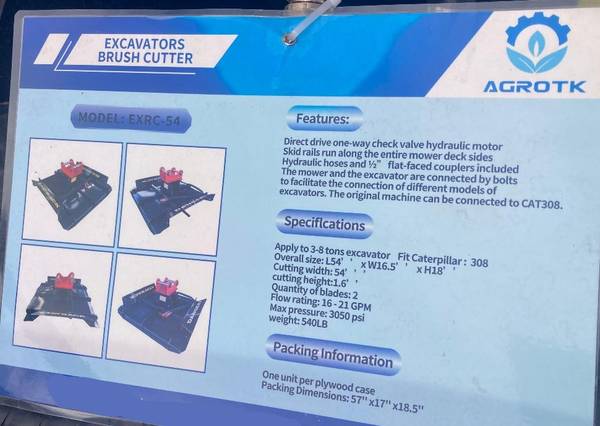 The AGT-EXRC54 brush cutter is a powerful hydraulic attachment designed for mini and mid-size excavators