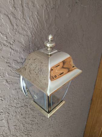 This elegant carriage style fixture is at least a decade old, but since it was in a completely shaded porch its whole life, it looks almost new and works perfectly.