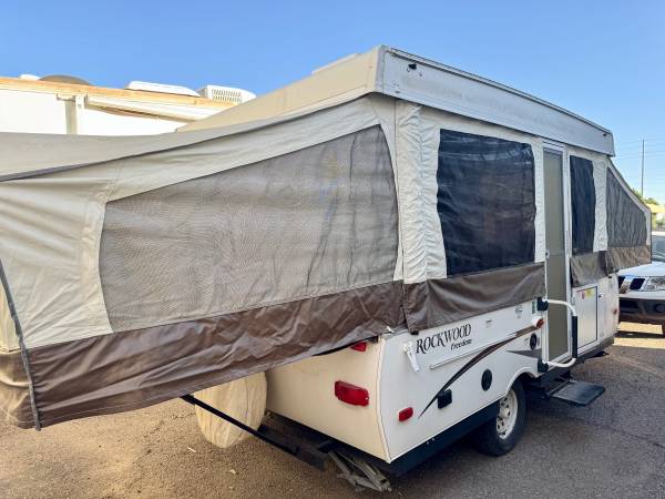 2016 rockwood freedom popup with slide out has electric lift Good tires has toilet and shower sink stove sleeps 8 good condition in and out clean title for more info call no emails no texts