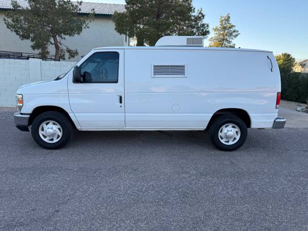 2008 Ford E-350 Econoline cargo van, regular body, barn door, 5.4 V-8, 4 speed overdrive automatic with 65K original miles, large ONAN commercial generator with 110 Volt receptacles located inside and outside of the van , a roof top A/C / heat unit, a partition inside, slide out tow mirrors, factory limited slip rear axle (C4 axle code ), tow package with a working aftermarket brake controller, 4 Goodyear Wrangler All Terrain LT245/75R16 load range E tires, a super clean interior, cloth seats, rubber flooring in front, tilt steering, manual windows and door locks, chrome step rear bumper. The composite headlights, chrome grill and chrome front bumper look nearly new. It has nice shiny original paint and a straight, dent free body. Really nice overall truck that runs and drives like a new truck. $8975 obo. It was a well maintained phone company truck in Canada for the first approx. 39K miles then it came to Ahwatukee, AZ for the majority of its life. I will listen to offers in person only. No Trades. Cash only. The van books for much more than he is asking, and that is not even including the Onan Generator or the roof top A/C, etc.