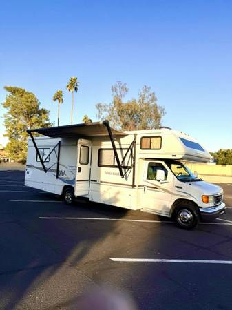 Winnebago Minnie Ford e450 v10 clean title 48 000miles runs and drive amizing new brakes cold ac shower fridge ,water ,tv all appliances work it's 26ft long easy to drive and park fet up to 8pepole table turns in too a bed 1 slide out electric awning onan generator 4000 micro quiet, serious buyer no waste your time if not serious.also ready for new owner no leaks brand new tires ๐๐๐please call 480 four three six 0099