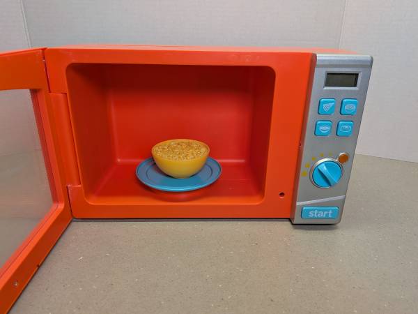 This toy microwave is super cute and realistic! Looks neat, though appears obviously used, but works perfectly.