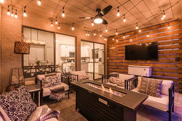 Fully updated and upgraded Scottsdale home with everything you need! This 3 bedroom 2 bath offers an outdoor living space, a sparkling heated pool, a putting green, 2 electric fireplaces, and so much more. The master bedroom is equipped with a king size bed, TV, Fireplace, and a door taking you out to the oasis of a backyard. The master bathroom has double sinks, a beautiful walk in shower, and a spacious walk in closet. The first guest bedroom offers two twin beds with a TV and the other guest bedroom offers a queen size bed and TV as well. The split floor plan allows all guests to have a place to retreat to at the end of the day while providing an open living space that everyone can enjoy together. Enjoy the queen sofa bed for extra sleeping in the living room.