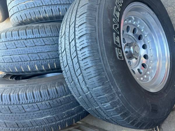 Selling a set of 15” OBS rims 5 lug off a 97 Silverado tires have like 65% tread asking 780 call or text