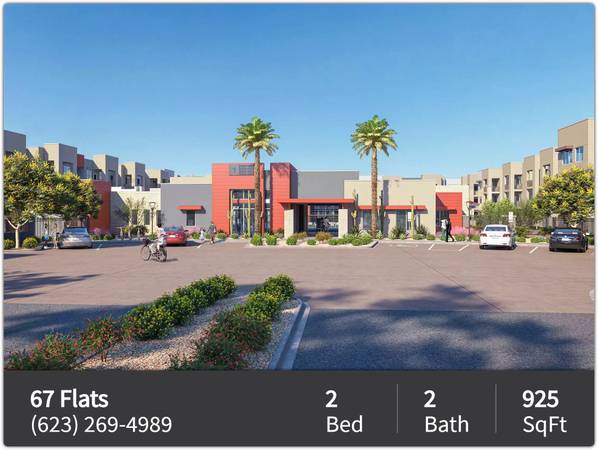 67 Flats redefines affordable living in Glendale, Arizona. Choose from our selection of 2 or 3 bedroom pet-friendly apartments, each meticulously designed to reflect comfort and style. Revel in features such as granite countertops, luxury vinyl plank flooring and fully equipped modern kitchens, ensuring a living space you'll be proud to call home. Complementing your experience, our community offers a fitness center, swimming pool, covered parking and a dedicated management and maintenance team committed to your satisfaction.