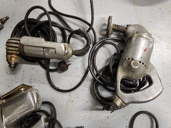 Metal Vintage Garage Workshop Tool Lot Sander Drill Saw. Black and Decker, Craftsman and a couple other brands. They all still work, but modern tools are WAY easier to use and some of the cords are looking on the rougher side. Great display or wall hangers in a mancave or repurpose into some cool robot or ray gun. $250 for all 8 picked up in Buckeye, AZ. Text me 54I4OI5I98