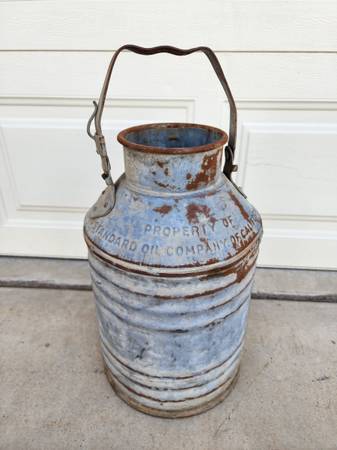 Vintage Standard Oil Company California 5 Gallon Metal Can. Great man cave garage art for the automobilia or petroliana collector. Has wear, some dents and surface rust. Measures 17-1/2" tall and has a 10-3/4" diameter. $95 picked up in Buckeye, AZ. Text me 54I4OI5I98