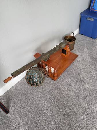 17th century bronze ships swivel cannon with custom stand 48" x 16" overall with cannon. The cannon is nicely engraved and has a one and a quarter inch bore. The barrel is 42" long and 5" diameter at the widest part. This and other items are located in Litchfield, Az. The price is $ 2500. I do not deliver or ship and take cash only no trades, Thank you for your interest.