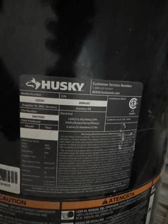 Heavy-Duty Husky 20-gallon vertical air compressor in solid working condition. Powerful & reliable — Perfect for garage, shop, warehouse, or job-site use.