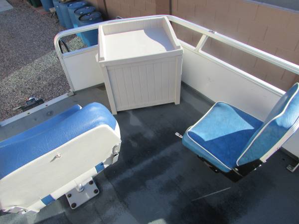 Seats have been reupholstered. The 3 swivel fishing seats in the front are in excellent condition.