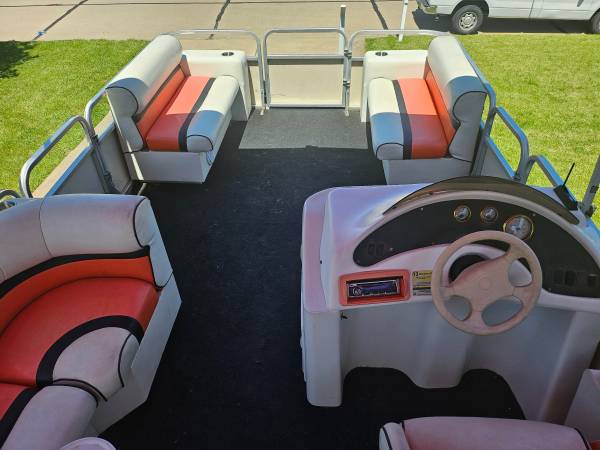2002 21-foot ERCOA Pontoon Boat w tandem trailer. 2023 60 HP Tohatsu Outboard Motor with less than 100 hrs. New tires, brakes and wheel bearings. New Bimini top with new frame (not shown) included.