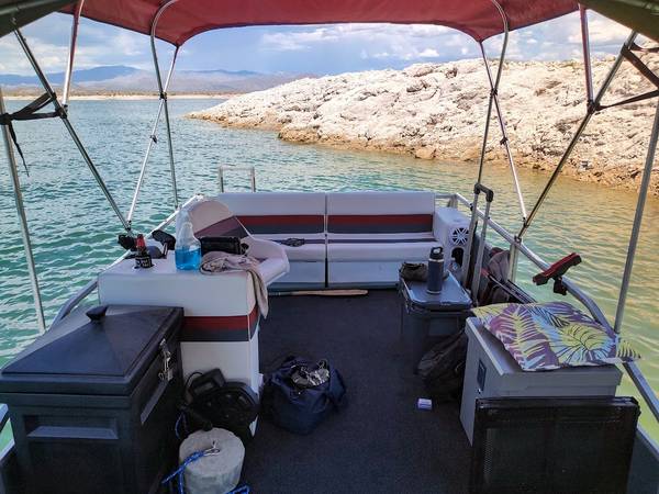 Boat completely redone, new deck, carpet, furniture, wiring, LED lights all around, new key switch and control binnacle, Boss head unit, Pyle 400 watt amp, Rockford Fosgate speakers, 3 battery's, fish finder, remote control 55lb trolling motor, remote control electric anchor, 30lb anchor, and 15lb anchor, new 100ft line and extra 100ft line, heavy duty 3/4" steel shade and Bimini,