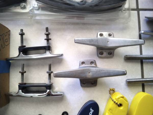 Miscellaneous Used Cleats, Bow eye u-bolt, All Round Marine light socket stern mount, $5 ea.