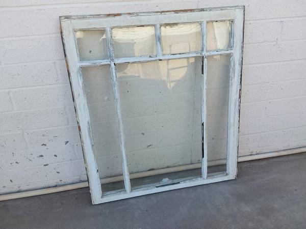 Antique wood 7-pane window for decorating. It measures 33-1/4 inches tall, 29-7/8 inches wide. Call (don’t text) Mark (623) nine-3-seven, six-0-nine-9. This is a land line phone than cannot receive...