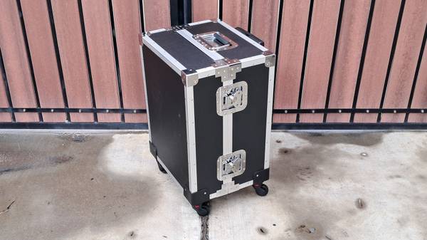 Nice condition ATA style trunk case with wheels and retractable handle. The wheels are removable. Case outside dimension: 12 x 15 x 20 in amateur radio, CB, FRS, GMRS, emcom, prepper, shortwave,...