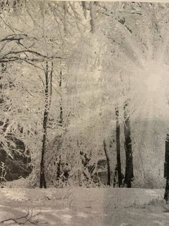 Photo Backdrop of Winter Snow Forest and Sunshine. 6.5' Wide by 6.5' High. Brand New. Cost $42.00 selling for $20.00. If interested call Kathy at .