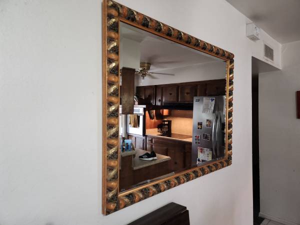 Large 45" x 35" Vintage Barbola Wall Mirror - Art Deco Bevel Edge Rectangle Mirror - Vibrant Gesso Fruit - Boho Kitsch Accent Mirror, can hang vertically or horizontally, pick up only near 83rd Ave...
