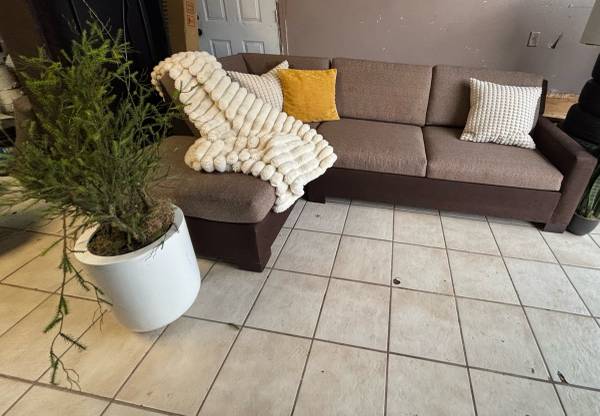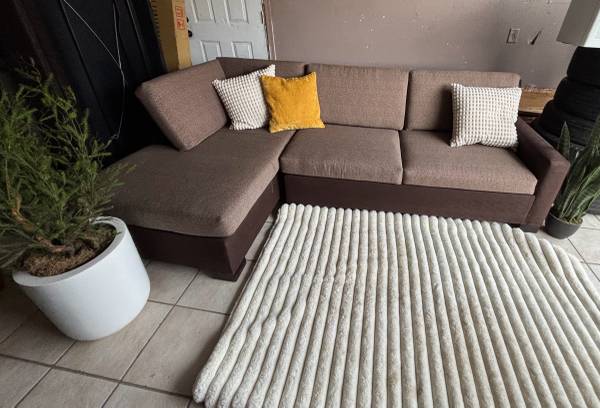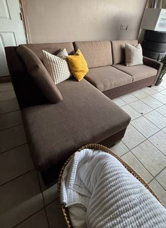 If interested you can call or text me at , sectional has a full size hidden bed, in clean and good condition, smoke and pet free, delivery available