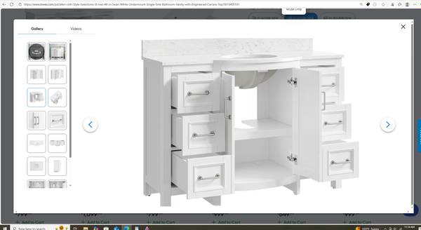 Selling a brand new St. Ives 48-in White Undermount Single Sink Bathroom Vanity with Carrara Engineered Marble Top from Allen and Roth still in box. The vanity comes with brushed nickel handle, soft-close concealed Euro hinges and adjustable internal shelf with floor plumbing cutout. The furniture overall dimensions (including backsplash): 48-In W x 20-In D x 38-In H. I also have same vanity in 60" size. Same vanity sells at Lowes for $1300+ tax. Selling for $950 dollars or OBO. Located on Thomas Rd. and 105th Ave. If interested, please text or call. Hablo Espanol. I also take Venmo and Zelle, but ONLY in person.