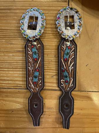 Want to add some bling to your bridle? Want to create a new bridle? This set needs a plain leather headstall to complete it. The browband, throatlatch, and cheek pieces are all in great shape. $20...