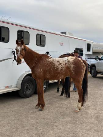Reno is a 14 yrs, 15.1 hands gelding. Reno is super friendly, easy to catch, saddle, shoes, stands for mounting & loading in trailer. Doesn't bite, kick or buck.