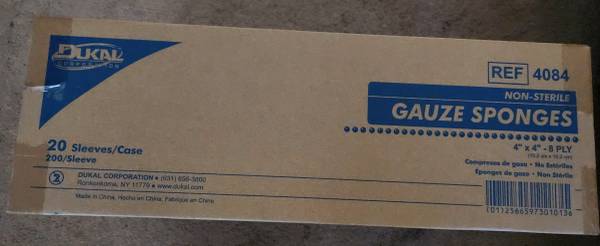 4" x 4" 8-ply Non-Sterile Cotton Gauze Sponge, Box of 4,000 Sponges. - ***NEW*** Unopened - Factory Sealed