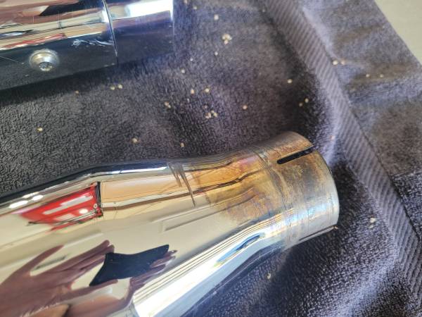 Drag Specialties slip on mufflers for 17-23 Harley M8 touring. These sound very good. Good condition other than bluing behind the right side heat guard. $75.00 call 480-296-44 seven nine.