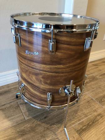 - (1) 16x16 Rogers floor tom with three Rogers adjustable legs. Used Remo Weather King Batter skin (clear with black center dot) on top and white Rogers branded Weather King skin on bottom.