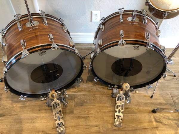Vintage early 1970’s Rogers Koa Double Bass Drum 8-piece Set + Pedals + Stands + Extras