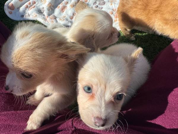 I have two boys and two girls. Healthy loving and independent. Ready for adoption parents are both long hair Chihuahuas pix are from today