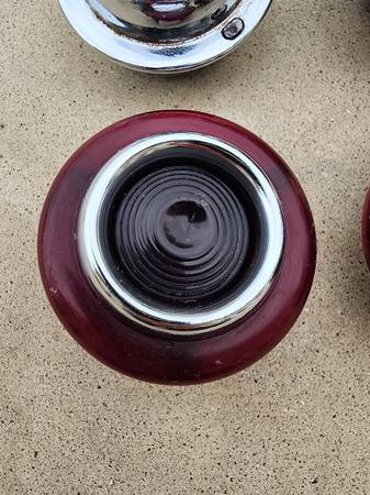 1946-1948 Lincoln Continental Inside Bakelite Door Push Button Lot. Used parts in good condition. There are four bezels. One bezel is missing the bakelite ring and one has a chunk out of the bakelite ring. There are 6 buttons. 2 do not have the springs and one of those is missing the lip. They should clean and polish up better with some effort. Great for a restoration or a hot rodded kustom car. $275 for the lot picked up in Buckeye, AZ. Text me 54I4OI5I98