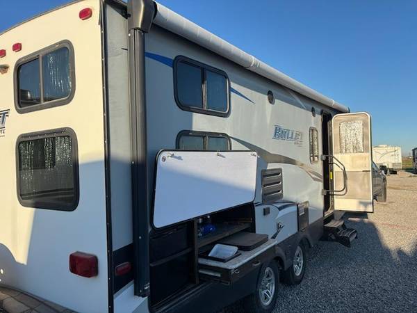 2018 Bunkhouse Trailer. Slide out dining table, U shape, converts to bed. Brand new tires. Hitch included. Used less than 10 camping trips. Still in excellent condition.
