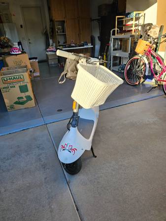 Okai Electric Scooter, hardly used. Has custom decals, basket, and a cup holder.
