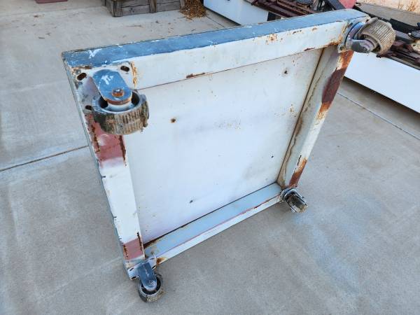 Heavy Duty Industrial Metal Rolling Utility Work Platform Cart. It is very solid and well made. Has some scuffs, scrapes and surface rust. The wheels do need replacing. Measures about 3 feet by 3 feet and 3-1/4" thick. $65 come pick it up in Buckeye. 54I4OI5I98 send me a text to set up a time